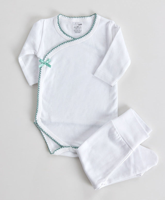 Conjunto de Bebé 3 Peças em Algodão Verde Água
