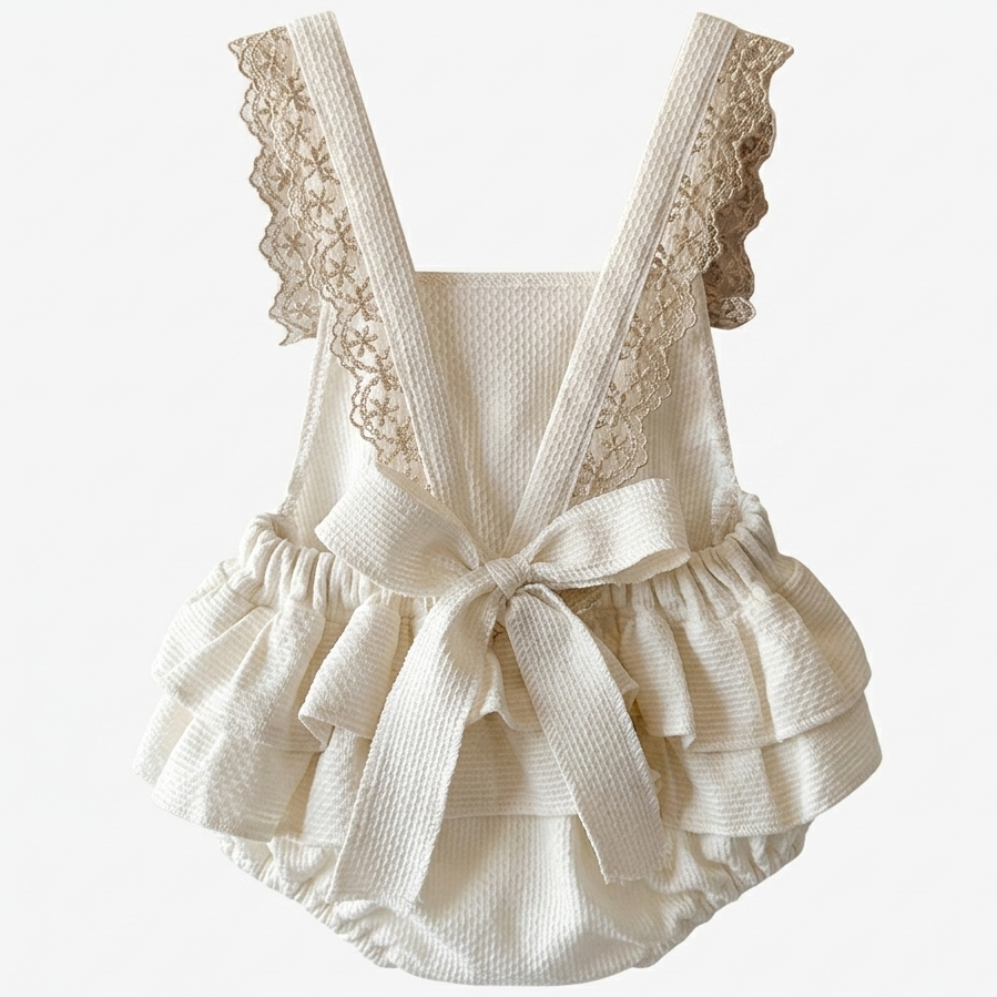 Romper Encanto Natural Off-White com Renda e Laço €32,00