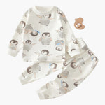 Conjunto interior confortável e quente, ideal para uso diário ou como camada térmica. Confeccionado em algodão de alta qualidade, oferece um toque suave à pele, resistência ao borboto e um ajuste confortável. Design unissexo com padrão infantil de pinguim.