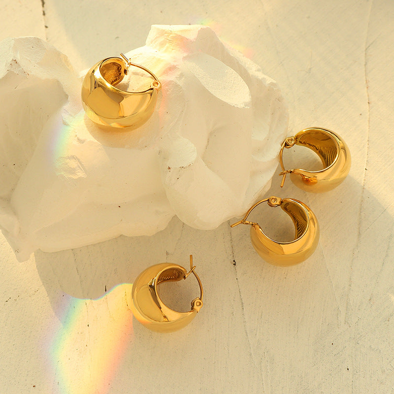 Os brincos em forma de C em aço inoxidável são uma escolha elegante e moderna para o dia a dia ou ocasiões especiais. Com um design minimalista, oferecem um visual sofisticado, resistente e intemporal.