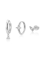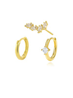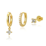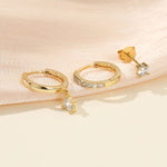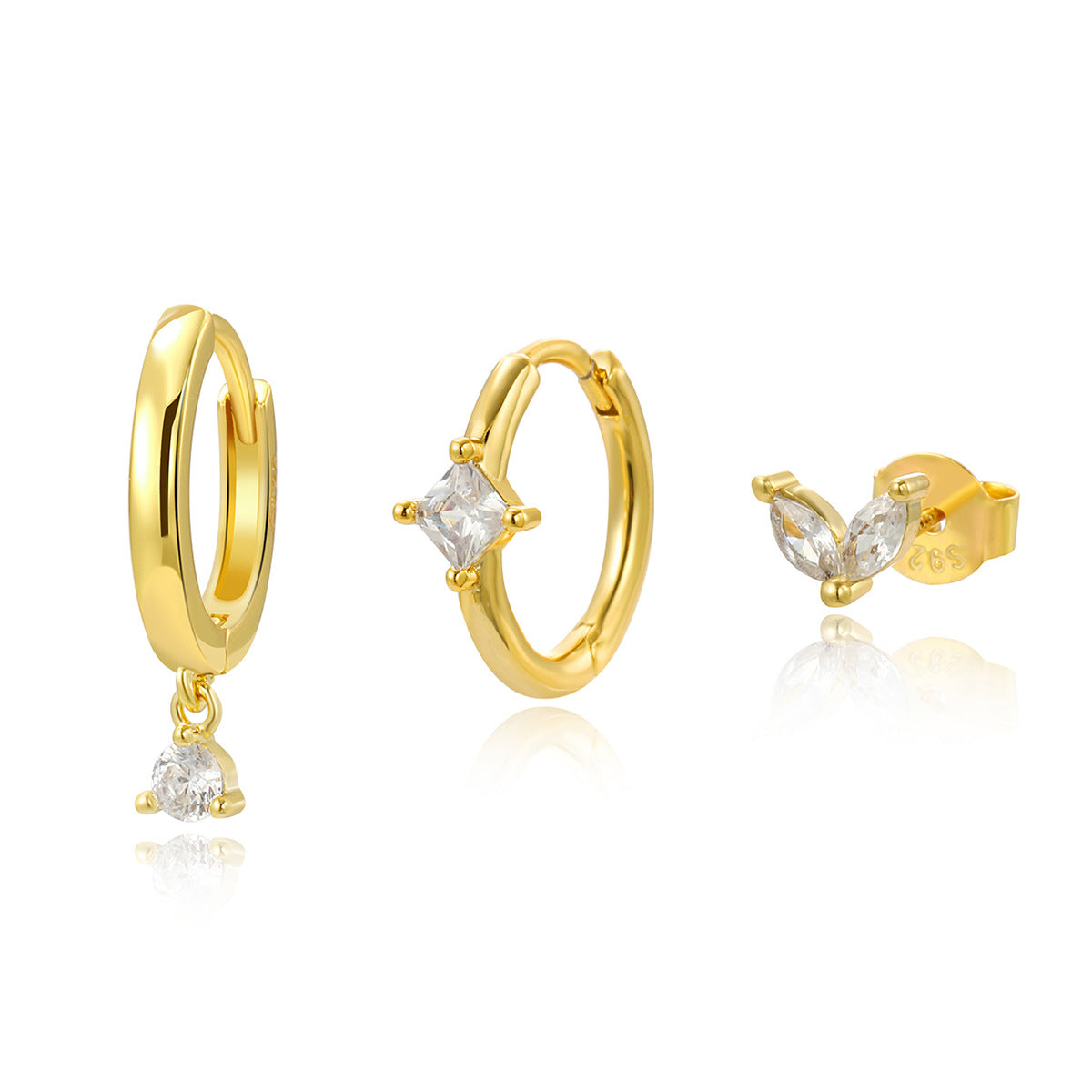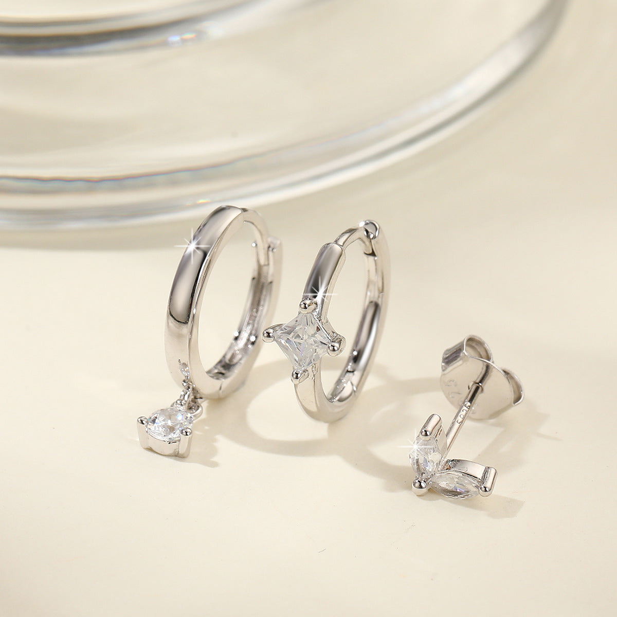 Conjunto de Brincos Geométricos em Aço Inoxidável com Zircónias