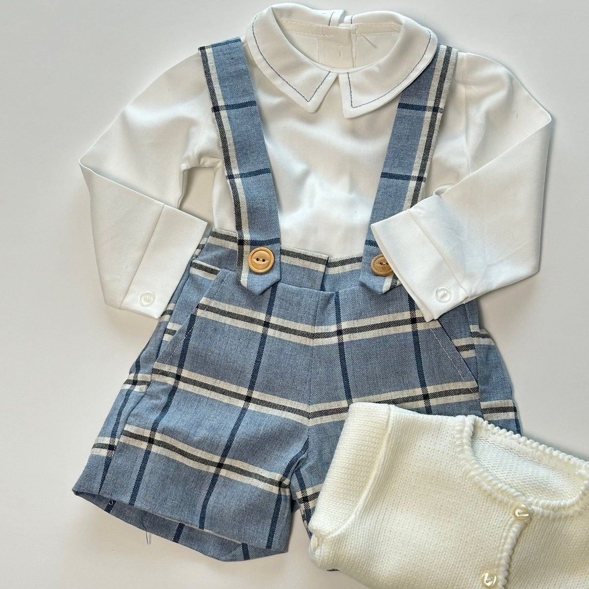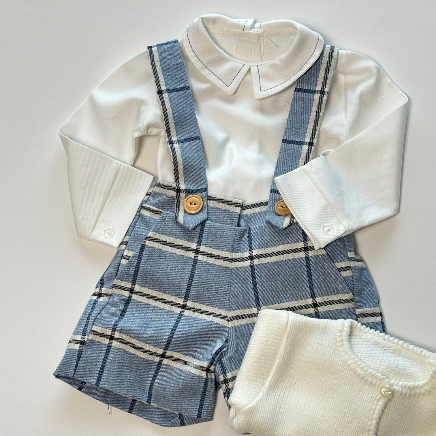 Este conjunto em malha de 2 peças para bebé é a escolha ideal para proporcionar conforto, suavidade e proteção ao seu pequeno nos dias mais frescos. Produzido em malha de alta qualidade, inclui uma camisa de manga comprida e uma jardineira de xadrez aconchegantes. O design clássico e intemporal torna-o perfeito tanto para o uso diário como para ocasiões especiais, sendo também uma excelente opção para presente.