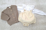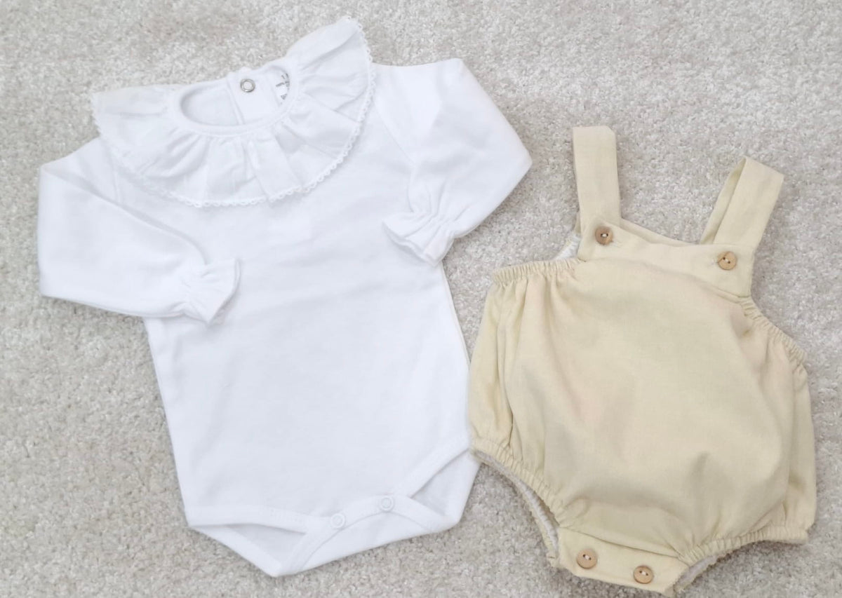 Este conjunto em malha de 2 peças para bebé é a escolha ideal para proporcionar conforto, suavidade e proteção ao seu pequeno nos dias mais frescos. Produzido em malha de alta qualidade, inclui um body de manga comprida e um fofo de bombazine aconchegantes. O design clássico e intemporal torna-o perfeito tanto para o uso diário como para ocasiões especiais, sendo também uma excelente opção para presente.