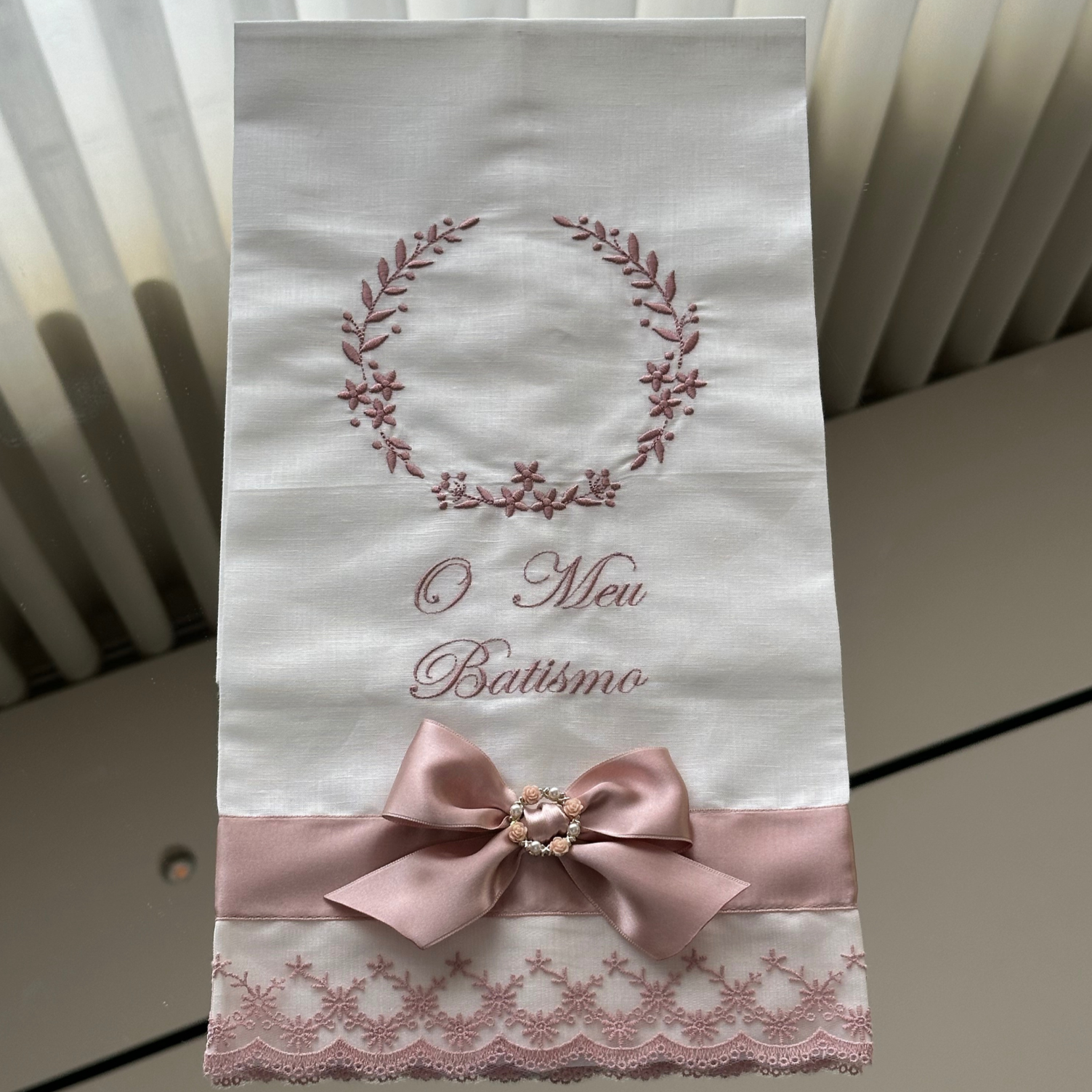 A Toalha Batizado é perfeita para deixar a ocasião do batizado ainda mais especial. Confeccionada em linho macio e delicado, possui bordados exclusivos e acabamento de alta qualidade. Garanta o conforto e sofisticação para esse momento tão importante.