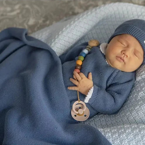 Conjunto de Bebé em Malha com Chapéu Azul Ciano Bebé 3 peças 100% Algodão