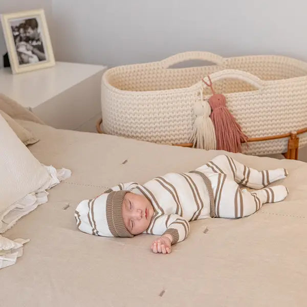 Conjunto de Bebé em Malha Bege Listrado Bebé 3 Peças 100% Algodão