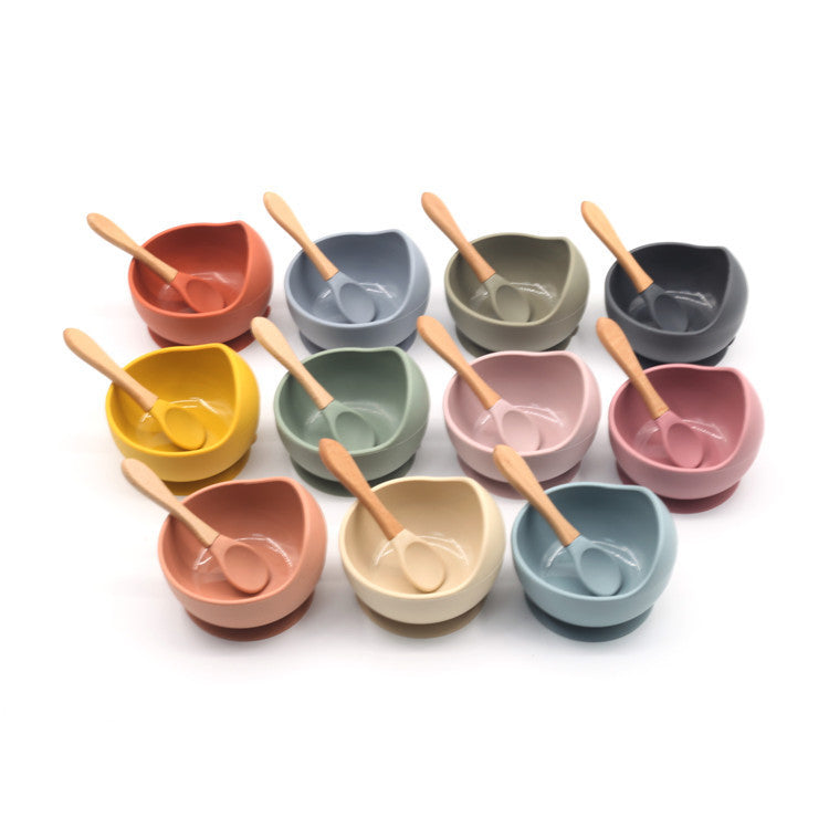 O conjunto de alimentação infantil em silicone com 2 peças é ideal para bebés em fase de aprendizagem. Composto por uma tigela com ventosa antiderrapante e colher  com cabo ergonómico em madeira, este conjunto proporciona praticidade, segurança e conforto durante as refeições.