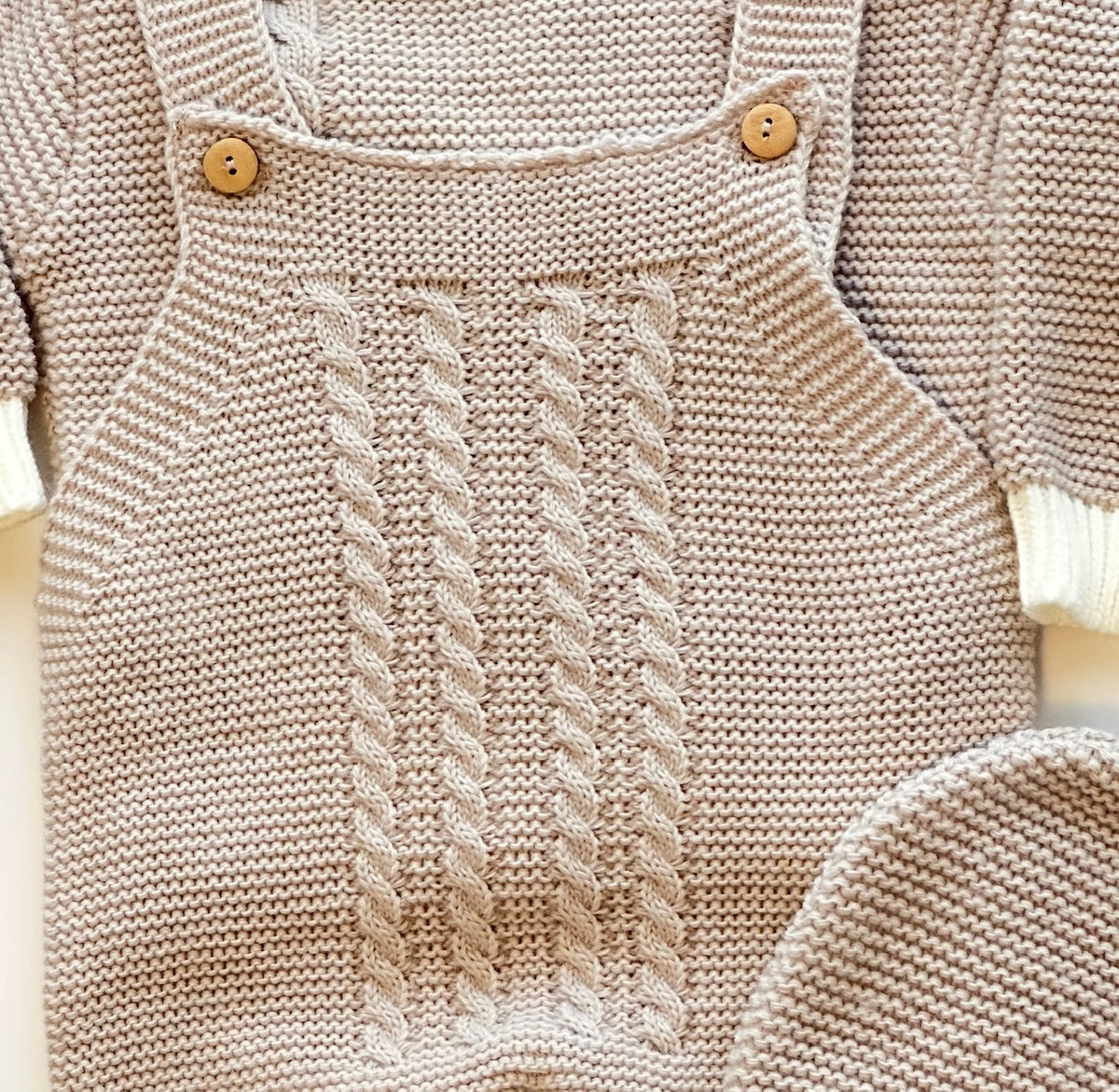 - Inclui: Camisola em Malha + Jardineira + Gorro
