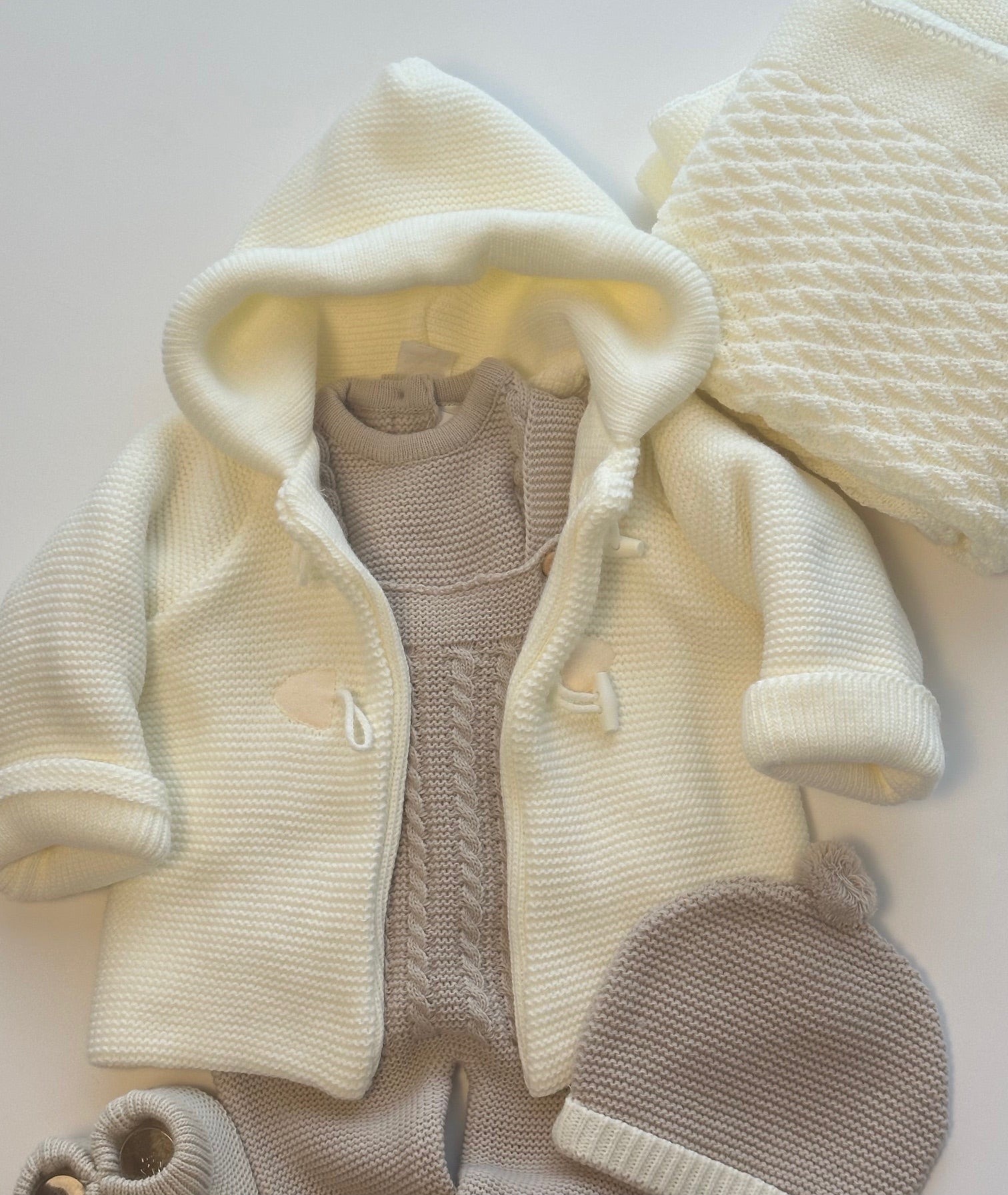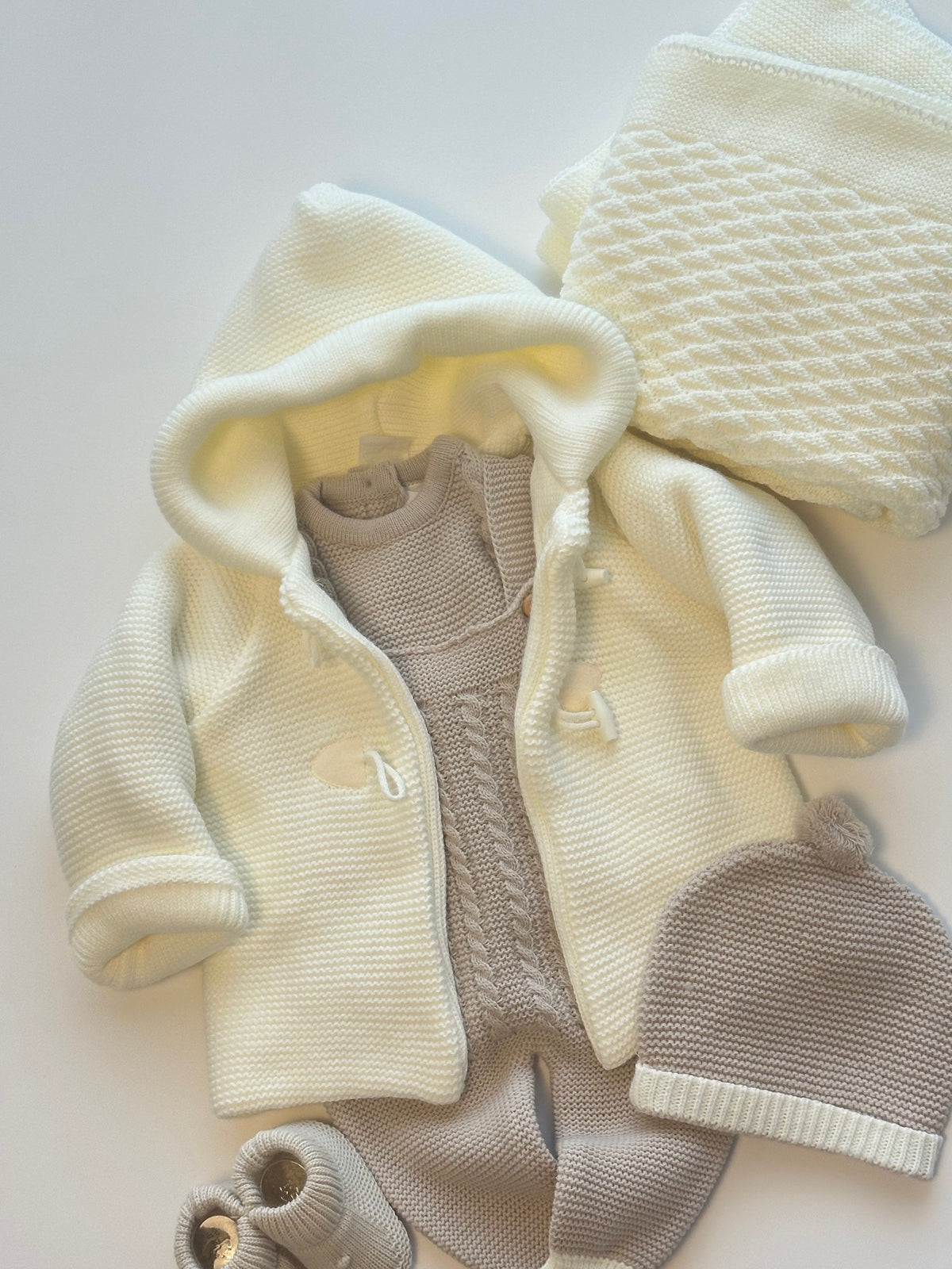 Este conjunto em malha de 3 peças para bebé é a escolha ideal para proporcionar conforto, suavidade e proteção ao seu pequeno nos dias mais frescos. Produzido em malha de alta qualidade, inclui uma camisola de manga comprida com botões atrás, umas calças aconchegantes e um gorro a condizer. O design clássico e intemporal torna-o perfeito tanto para o uso diário como para ocasiões especiais, sendo também uma excelente opção para presente.
