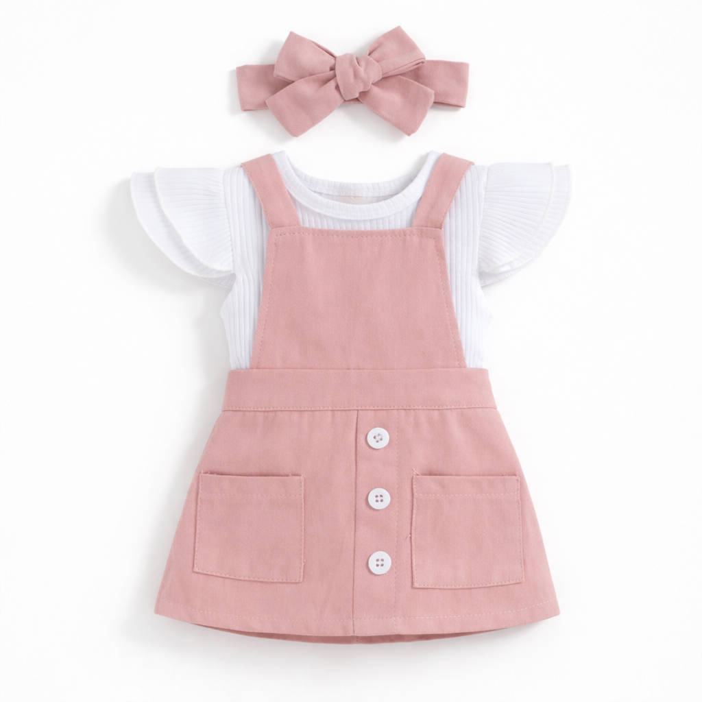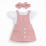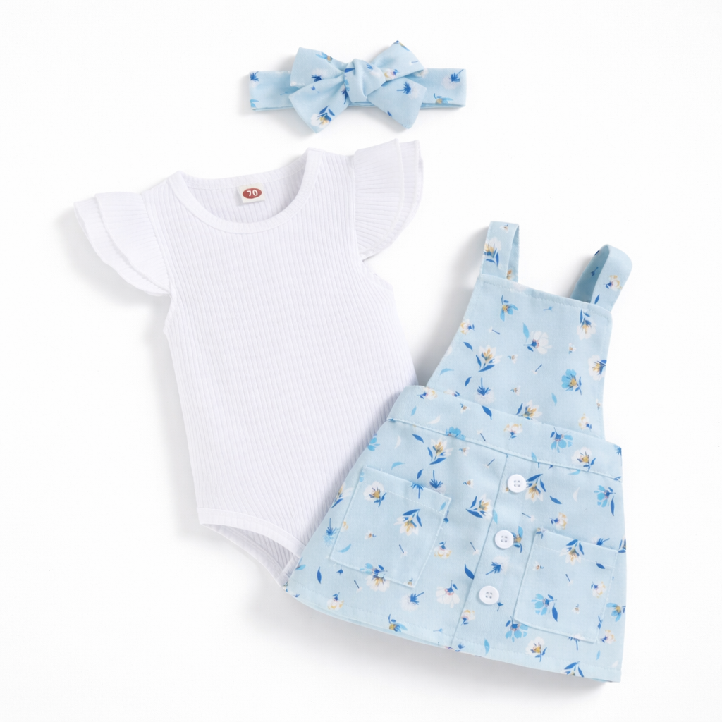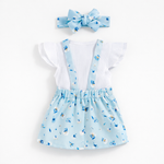 Conjunto infantil encantador e confortável, ideal para a primavera e o verão. Composto por t-shirt de manga curta, saia de alças com padrão floral e bandolete a condizer, este conjunto alia praticidade e estilo. Produzido em algodão macio, garante conforto e respirabilidade, sendo perfeito para o dia a dia ou ocasiões especiais.