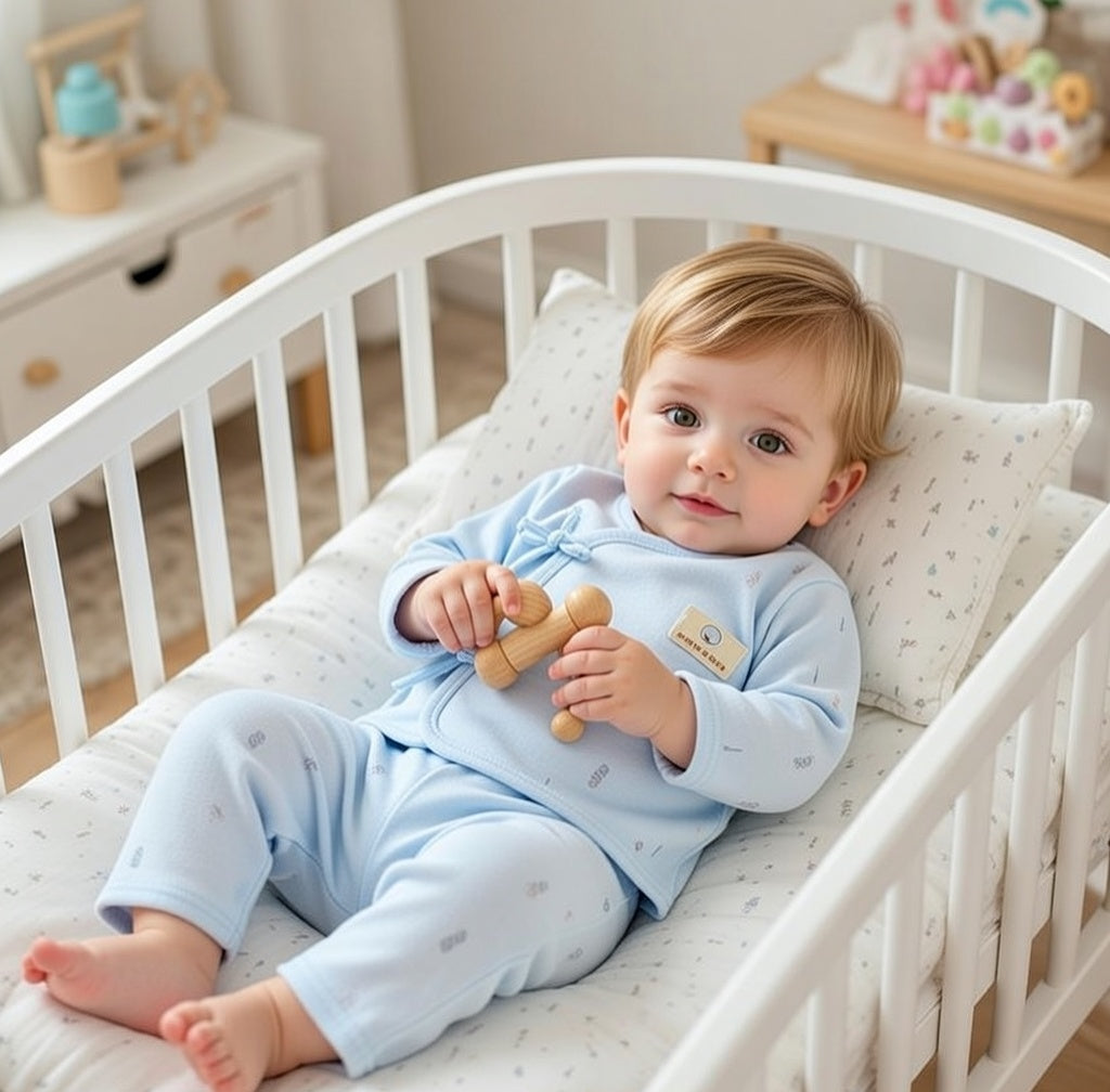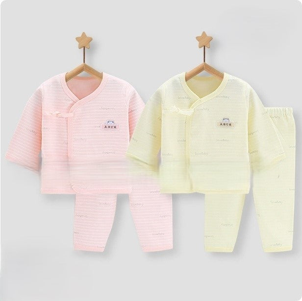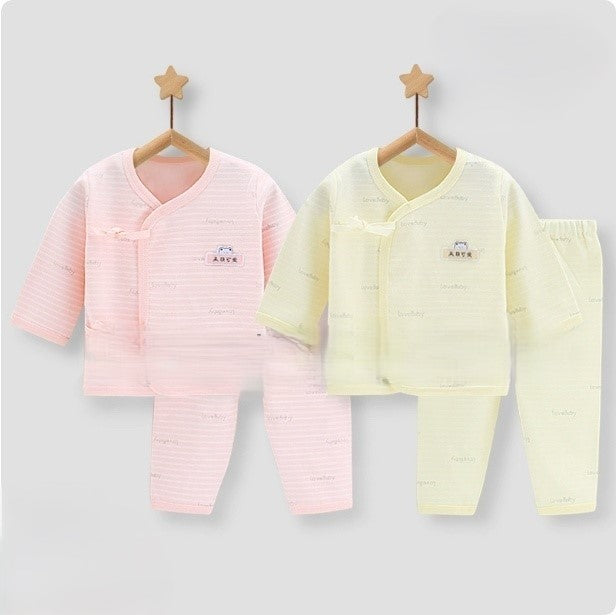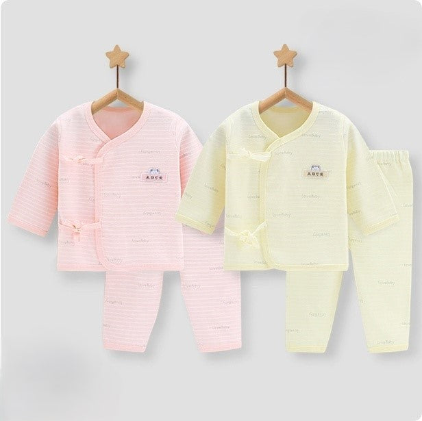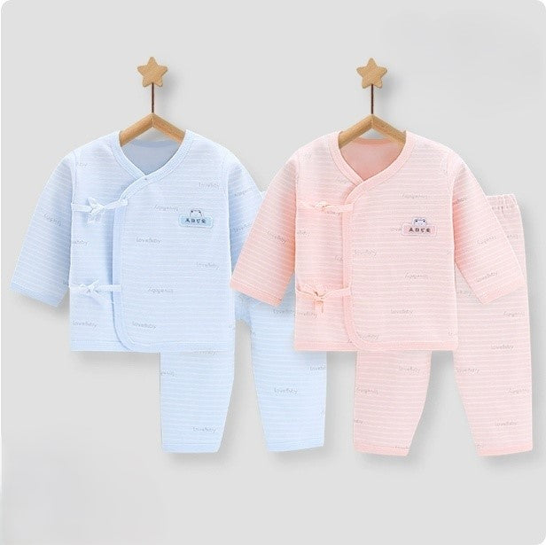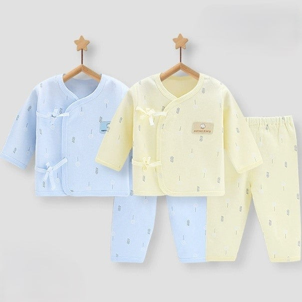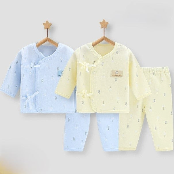 Conjunto interior para recém-nascido, confecionado em algodão puro de elevada qualidade, ideal para a pele sensível do bebé. Confortável, respirável e prático, é perfeito para o uso diário desde os primeiros dias de vida.