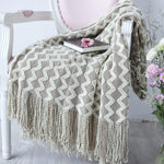 Cobertor elegante de lã tricotada com padrão geométrico. Ideal para todas as estações, combina conforto. O tecido principal é chenille, proporcionando suavidade e aconchego.