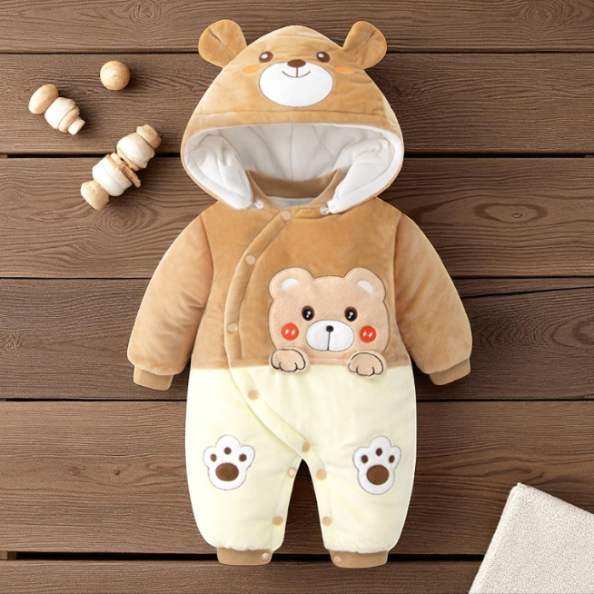 Este macacão em algodão puro é confortável, respirável e ideal para uso diário. O design versátil adapta-se a meninos e meninas, com estampados divertidos de animais que tornam cada peça única. Perfeito para manter o bebé protegido e estiloso em todas as ocasiões.