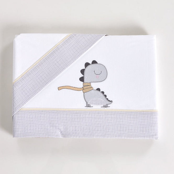 Jogo de cama para bebé em algodão com aplicação bordada. Incluí uma capa ajustável e uma fronha de almofada.